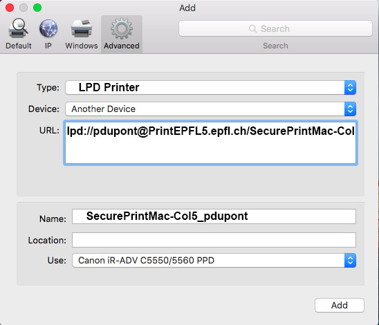 - URL : lpd://pdupont@PrintEPFL1.epfl.ch/SecurePrintMac-Col