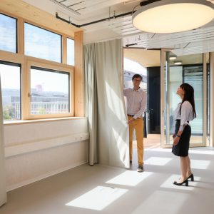 SolAce – which opened its doors today at the NEST building in Dübendorf – is a pilot unit where researchers will test new technology for sustainable living and optimal user comfort. The building will generate more power than it uses (for heating and electricity) and will be carbon neutral or even carbon negative. Intended to be a combined working-living space, it has a bedroom with two separate beds, a kitchen and a living room.